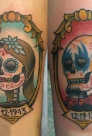 情侣纹身 情侣手臂上骷髅头纹身图片