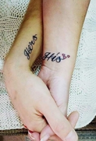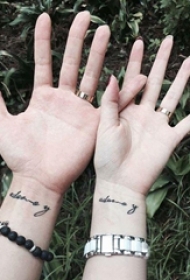 情侣手臂上黑色线条创意文艺花体英文纹身图片