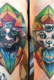情侣手臂上彩绘水彩素描霸气可爱猫咪纹身图片
