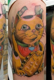 大臂old school可爱的招财猫和粉红色花朵纹身图案