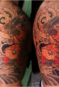彩色日本武士肩部纹身图案