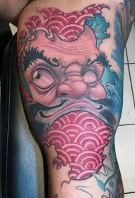 腿部彩色新日式般若面具纹身图片