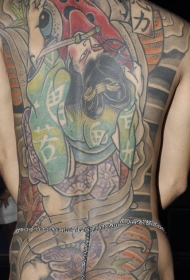 满背彩色武士之战纹身图案