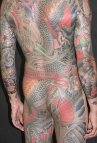 全甲彩色日本黑帮龙纹身图案