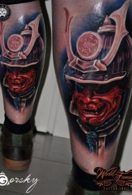 腿部彩色新日式武士面具纹身