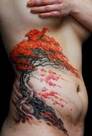 腰侧彩色漂亮的日本盆景树纹身图片
