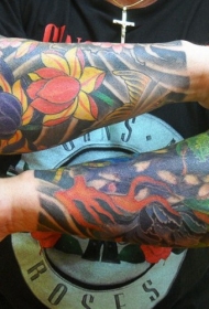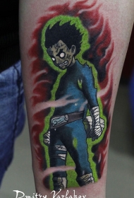 手臂彩色日本动画片风格恶魔战士男孩纹身