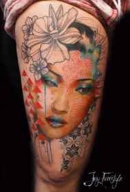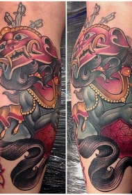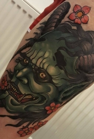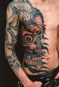 男性胳膊腹部胸部彩色神秘的日本骷髅纹身图案