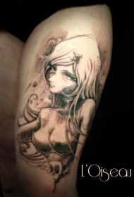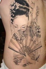 男士满背写实逼真的彩色蜥蜴和波浪纹身图案