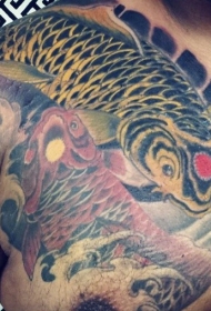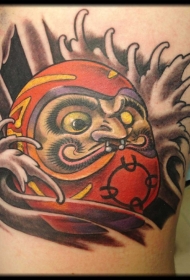 腹部全新日式彩色秘骷髅和龙纹身图案