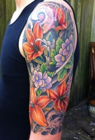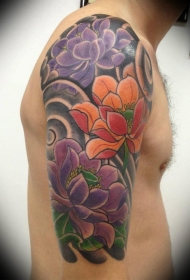 手臂生动的彩色日式花朵纹身图案