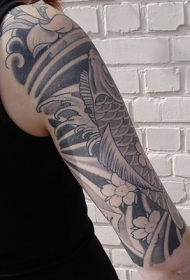手臂日式的锦鲤黑色纹身图案