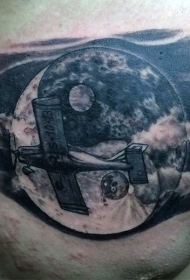 胸部有趣的黑色阴阳标志结合旧飞机纹身图案