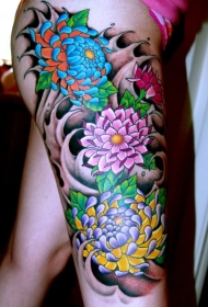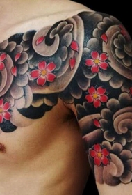 日本传统风格的黑色龙和菊花半甲纹身图案