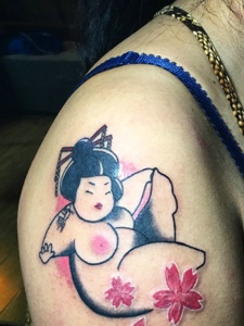 大臂一枚日式胖妹子纹身图片性感邪恶