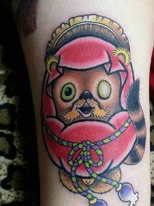 日式小松鼠拿着刀的纹身图案