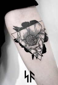 手臂黑色美丽的花朵与白色三角形纹身图案