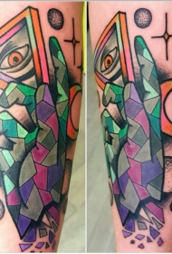 手臂梵花和三角形眼睛组合纹身图案