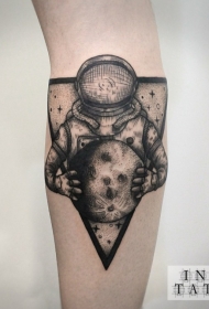 宇航员与月亮和三角形黑色手臂纹身图案