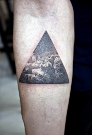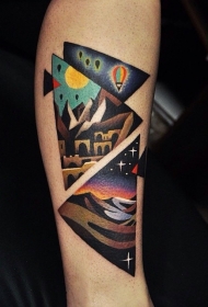 old school三角形与夜晚景色彩绘手臂纹身图案