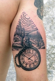 经典的黑灰风格三角形和时钟手臂纹身图案