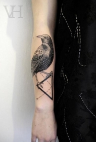 手臂惊人的逼真小鸟与三角形纹身图案