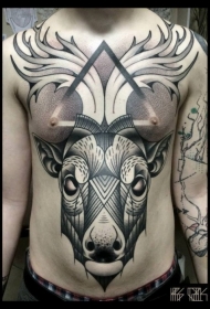 胸部几何鹿头泼墨彩绘纹身图案