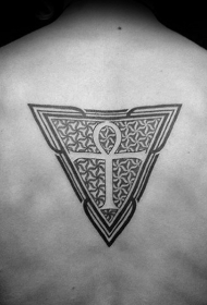 背部黑色三角形与埃及十字架纹身图案