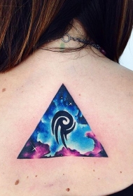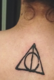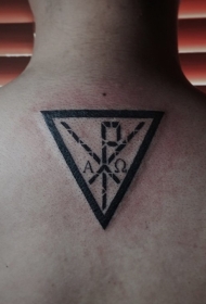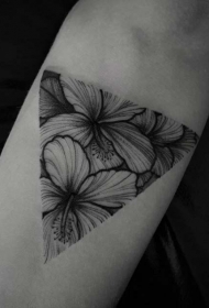 大臂雕刻风格黑色人的眼睛和三角形纹身图案