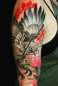 大臂雕刻风格黑色好看的鹰头纹身图案