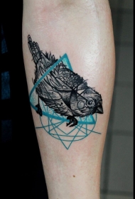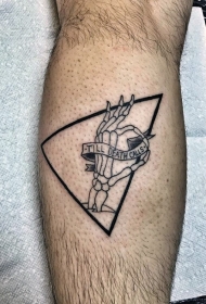 小腿new school黑色恶魔狮子与黑三角纹身图案