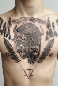 大腿神秘雕刻风格狼头心脏和黑色三角形纹身图案