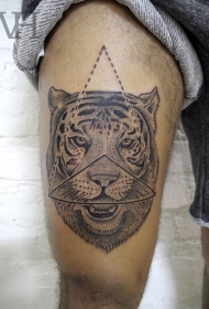 大腿雕刻风格黑色三角形与老虎纹身图案