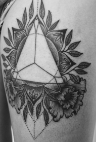 大腿黑色三角形结合花朵纹身图案