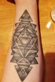 男生手臂上黑色线条几何元素三角形纹身图片