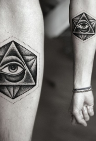 黑色点刺三角形眼睛小臂纹身图案