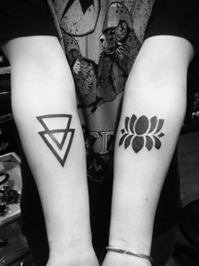 重叠的三角形手臂情侣纹身图片