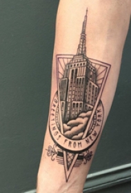 建筑物纹身 男生手臂上三角形和建筑物纹身图片