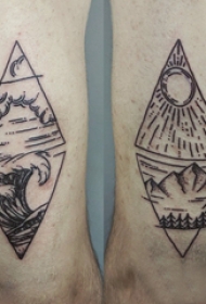 手臂纹身素材 男生手臂上三角形和风景纹身图片