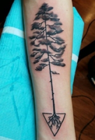 手臂纹身图片 男生手臂上三角形和树纹身图片