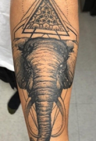 手臂纹身素材 男生手臂上三角形和大象纹身图片