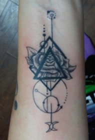 几何元素纹身 女生手臂上圆形和三角形符号纹身图片
