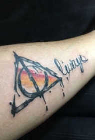 花体英文纹身 男生手臂上花体英文纹身三角形纹身图片