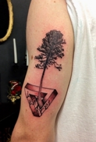 手臂纹身素材 男生手臂上大树和三角形纹身图片