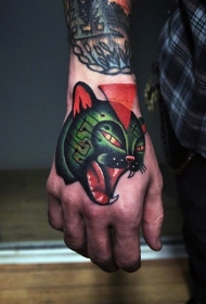古老的彩色神秘猫爪和三角形与眼睛纹身图案