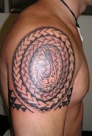 男生手臂上黑色几何线条三角形和菱形纹身图片