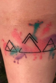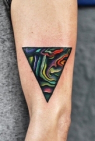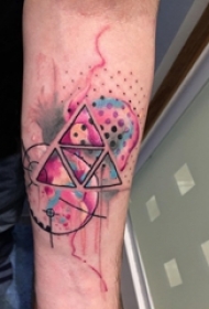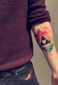 男生手臂上彩绘泼墨几何元素三角形纹身图片