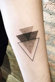 女生手臂上黑色点刺几何线条三角形纹身图片