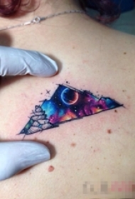 女生背部彩绘水彩创意星球元素几何三角形纹身图片