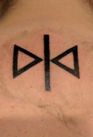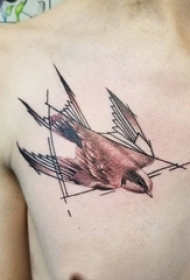 男生胸部黑灰点刺几何线条三角形和小鸟纹身图片